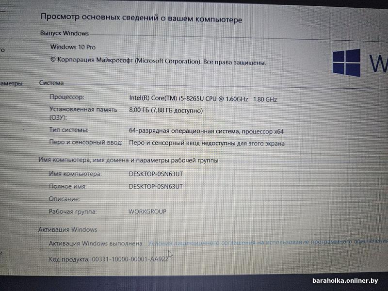 15.6" 1920 x 1080, TN+Film, 60 Гц, Intel Core i5 8265U, 8 ГБ DDR4, SSD 256 ГБ