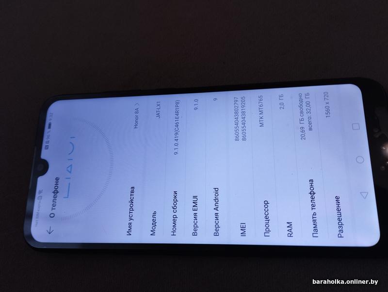 Продаю мобильный телефон — Honor 8A, объем памяти: 2 Гб / 32 Гб. Андроид 9. Экран 6,09". Поддерживает Две SIM и карту памяти. Характеристики описаны тут - https://catalog.onliner.by/mobile/honor/jatlx1bl