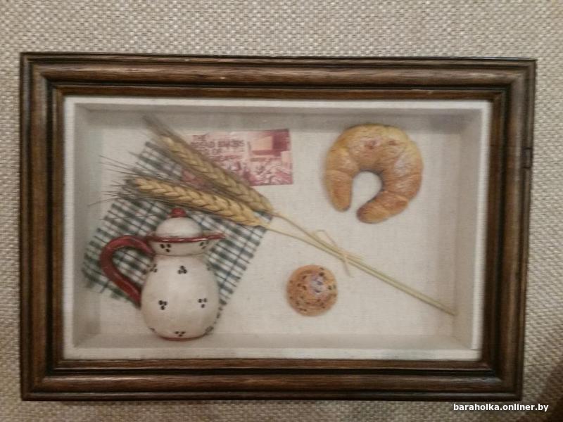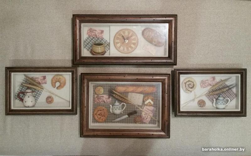 Композиция из 4-картин под стеклом, рамы дерево.