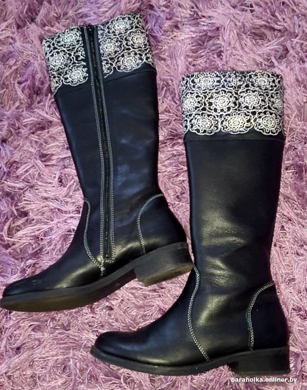 Продам сапоги Котофей, размер 35, из натуральной кожи чёрного цвета, верх голенища украшен рисунком с ажурными цветами нежно-розового цвета. Внутри натуральная шерсть. Застёжка - молния. Ношены совсем немного. Можно и на зиму. Могу выслать почтой.