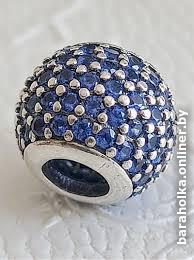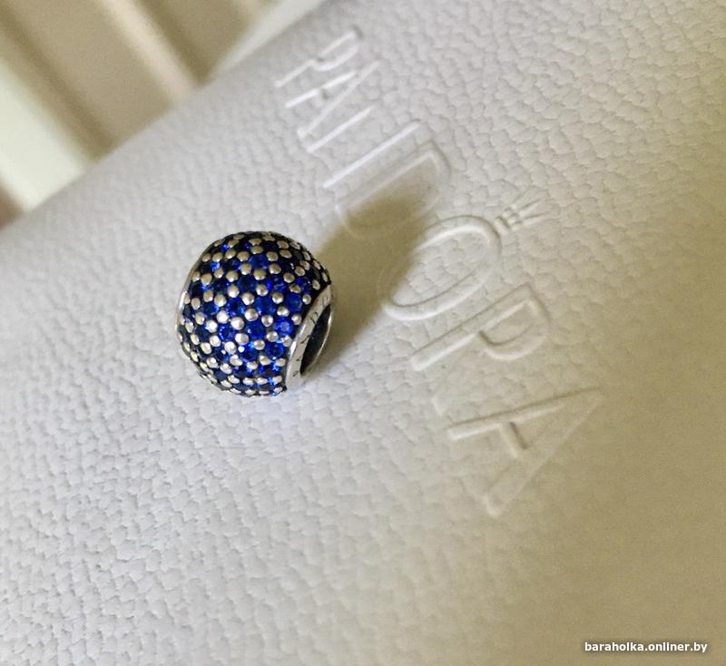 Подлинный снятый с производства Pandora Silver Pave Lights Blue Crystals сверкающий хрустальный шар с фианитами, 791051NCB.