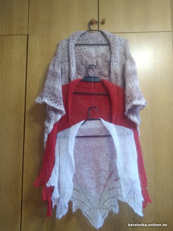 Платки пуховые с различными узорами, различных фасонов и размеров.