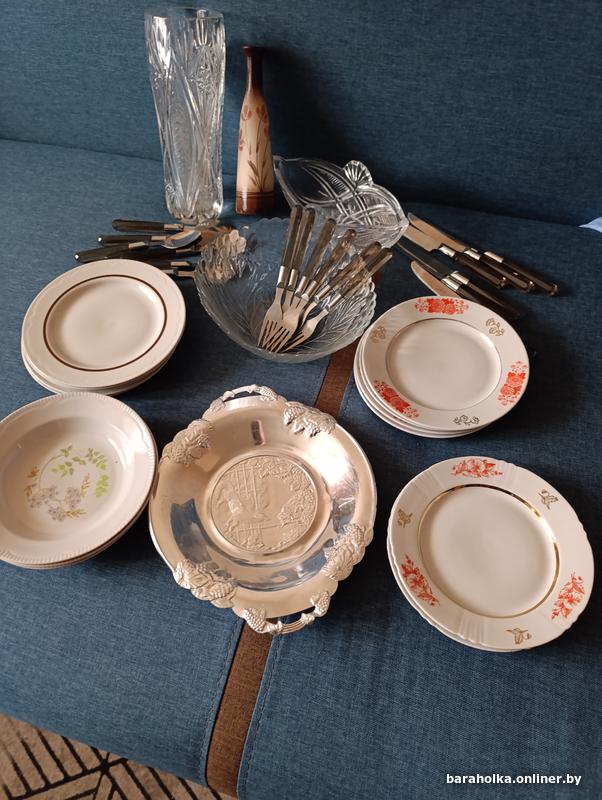 Салатницы, вазы, тарелки, ножи, вилки и ложки. Состояние всех хорошие. Смотрите по фото. Цена за всё.