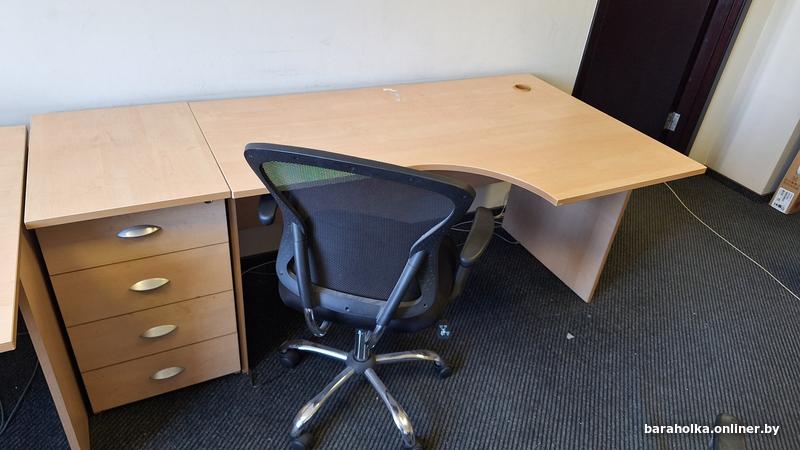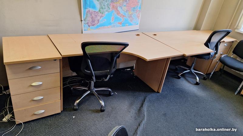 Комплект офисной мебели на 4 рабочих места. В хорошем состоянии. В комплекте 4 стола, 4 тумбы, 4 стула, 1 шкаф для документов.