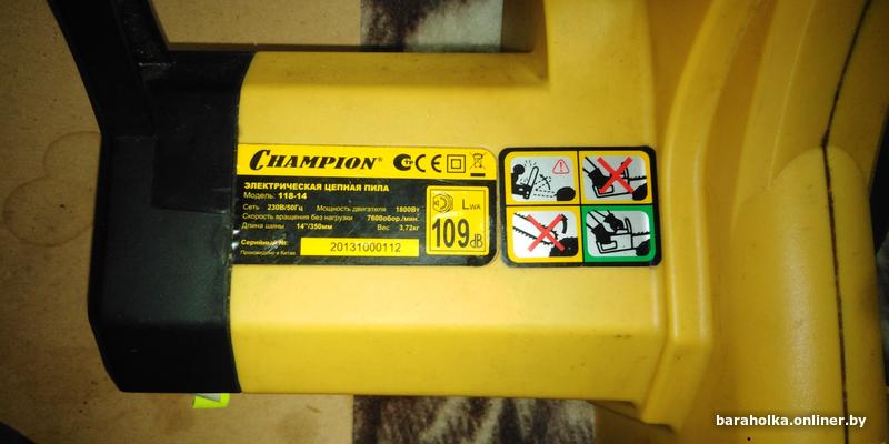 • Пила цепная электрическая Champion 118-14, 14".Отличное состояние.Минск