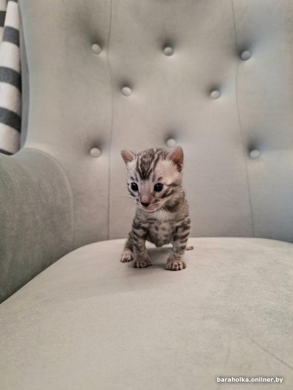 Окрас ns 24 розетка на серебре (редкий окрас),очень контрастные яркие розетки на чистом фоне.Будет готов к переезду в конце января.Бенгальская порода НЕ ЛИНЯЕТ!!!