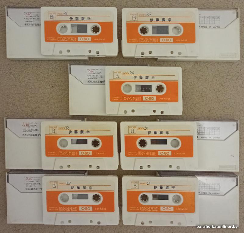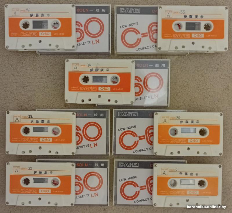 Аудиокассеты Dai'ei C-60LN (Япония). Лента в хорошем состоянии, проверены выборочно - пишутся, футляры и вкладыши оригиналы, цена за 7 штук. На кассетах есть надписи (иероглифы) ручкой, а внутри на вкладышах - карандашом (пример на третьем фото). Связь здесь, по телефону или в мессенджерах. С Белпочтой и Европочтой дружу, пересылка за счёт покупателя. Перед выкупом лота желательно уточнить о наличии т.к. лот выставлен на нескольких площадках. Для связи +375-29-2589605.