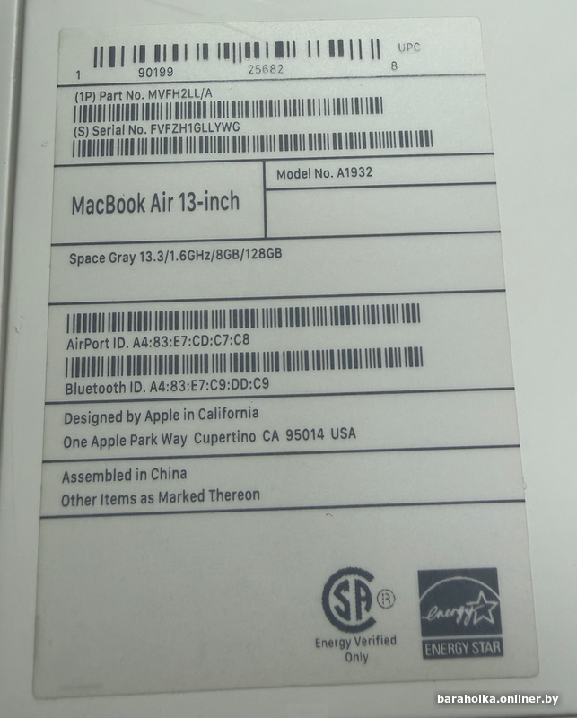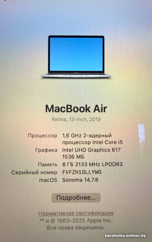 MacBook Air 13” 2019 (MVFH2), серый (Space Gray), состояние 9/10. Retina 13.3" 2560×1600, i5-8210Y, 8 ГБ RAM, SSD 128 ГБ, macOS, батарея 50.3 Вт·ч. Пользовались недолго. Полный комплект + коробка. Идеален для учёбы/работы/путешествий. Обоснованный торг с реальным покупателем.