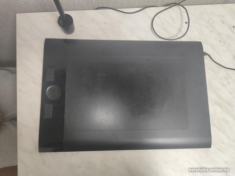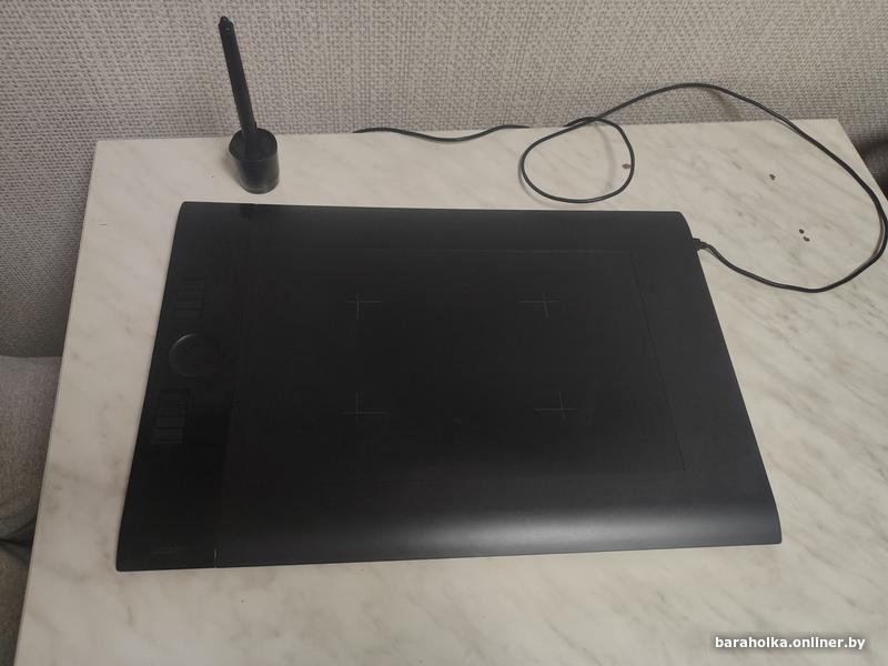 Планшет б/у, но им практически не пользовались. Все работает идеально, в хорошем состоянии. В комплекте: провод для подключения, стилус, запасные стержни, подставка.