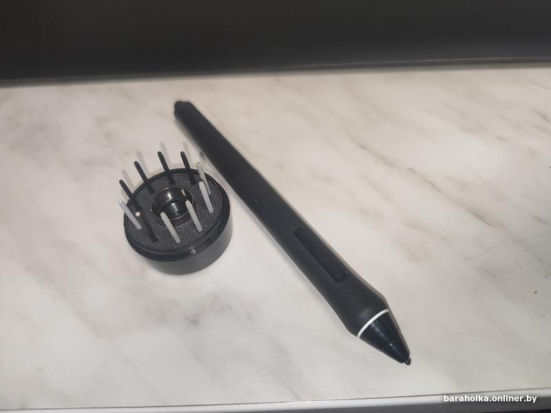 Общие размеры: ширина 47.2 см, высота 32см. Рабочая панель 21 на 33.5. Диагональ 39.5 см. Горячие клавиши работают, запасные стержни внутри подставки. Перо полностью рабочее. Драйвера на него поддерживаются
