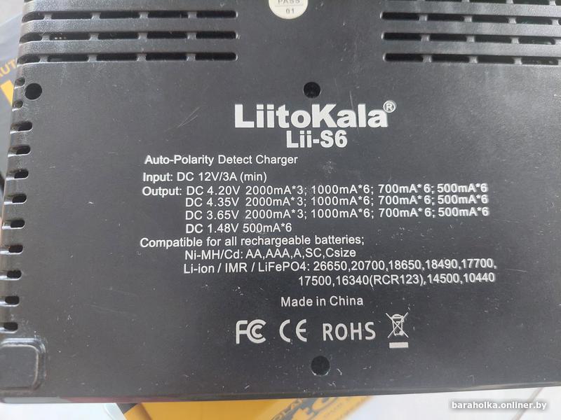 Зарядное устройство liitokala lii-S6, в отличном состоянии, почти не пользовался, было резервным, все слоты работают, ремонтов небыло, приятный экран. блок питания родной, 12v 3a.