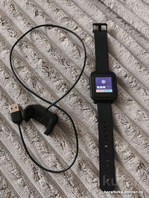Оригинальные часы Amazfit bip 1 с целой батарей в отличном состоянии. Часы с черным чехлом, ремешок без хлястика.