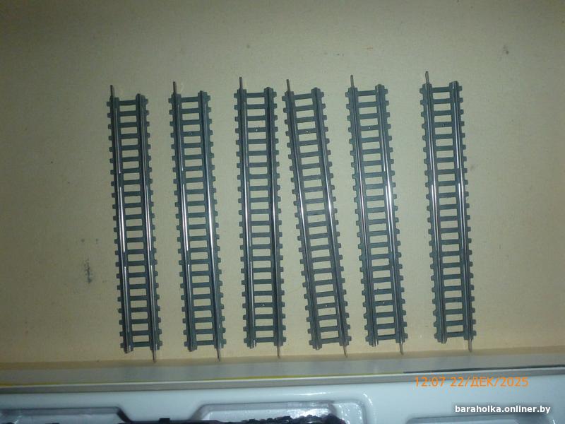 В придачу стрелка (без тяги переключения) могу найти для ремонта если надо) + 2 радиусных и один прямой рельс.