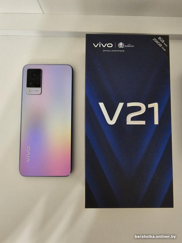 Телефон Vivo V21 в очень красивом цвете "Сияющий закат". Покупался в 5 элементе в 21 году, международная версия, в отличном состоянии. Тонкий изящный женский телефон толщина 7,39 мм. Объем памяти 8/256ГБ. Экран 6.44''. Очень хорошая фронтальная камера для селфи 44 Мпикс с оптической стабилизацией, автофокусом и двойной вспышкой, хорошая основная камера 64 Мпикс с оптической стабилизацией и автофокусом + широкоугольная камера 8 Мпикс макро 2 Мпикс. Съемка видео 4К на фронтальную и основную камеру, 2 сим-карты, слот для карты памяти. Телефон постоянно использовался в чехле и с защитным стеклом. На стекле и задней крышке нет царапин и потертостей. Незначительные, почти незаметные следы использования есть на боковых гранях, но даже под прозрачным чехлом этого не видно. Аккумулятор держит более суток. Работают все функции без проблем. Телефон не тормозит. Полный комплект, документы, коробка, чехол, быстрое родное зарядное устройство 33W.