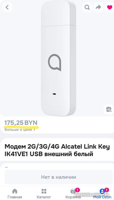 4G USB Модем - Alcatel Link Key IK41VE1, белый, б-у