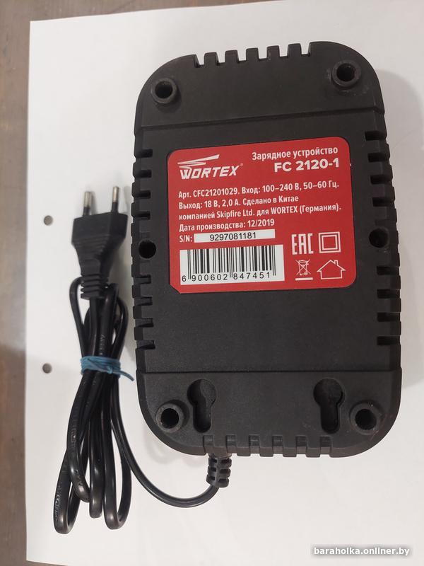 Зарядное Wortex FC2120-1, 18 вольт, неисправно, не заряжает.