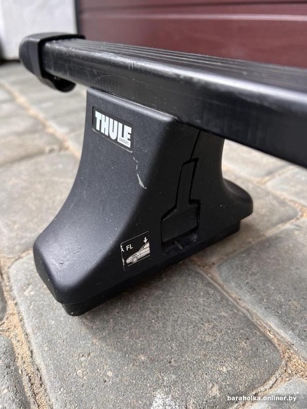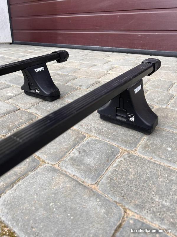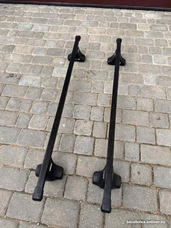 Поперечные рейлинги Thule в комплекте с опорами. Стояли на CITROEN Xsara Picasso. Максимальная грузоподъемность багажника составляет 75 кг.