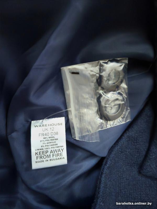 Пальто европейской фирмы Warehouse указан размер UK12, подойдёт на 46-48 M, смотрите замеры. Состав: 66% шерсть, 21% полиэстер, 7% акрил, 6% полиамид.