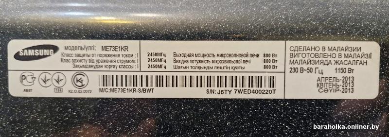 хорошее состояние, отдельностоящая, микроволны (соло), объем 20 л, выходная мощность микроволн 800 Вт, управление электронное, автоприготовление, авторазмораживание