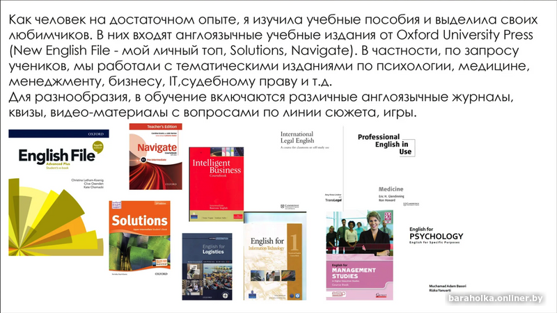 Чтобы не умереть со скуки ни мне ни Вам, в уроки интегрируются различные активности в виде опросников, квизов с картинками либо загадками, видео, обсуждение новостей и всего что Вас интересует ( главное на английском).