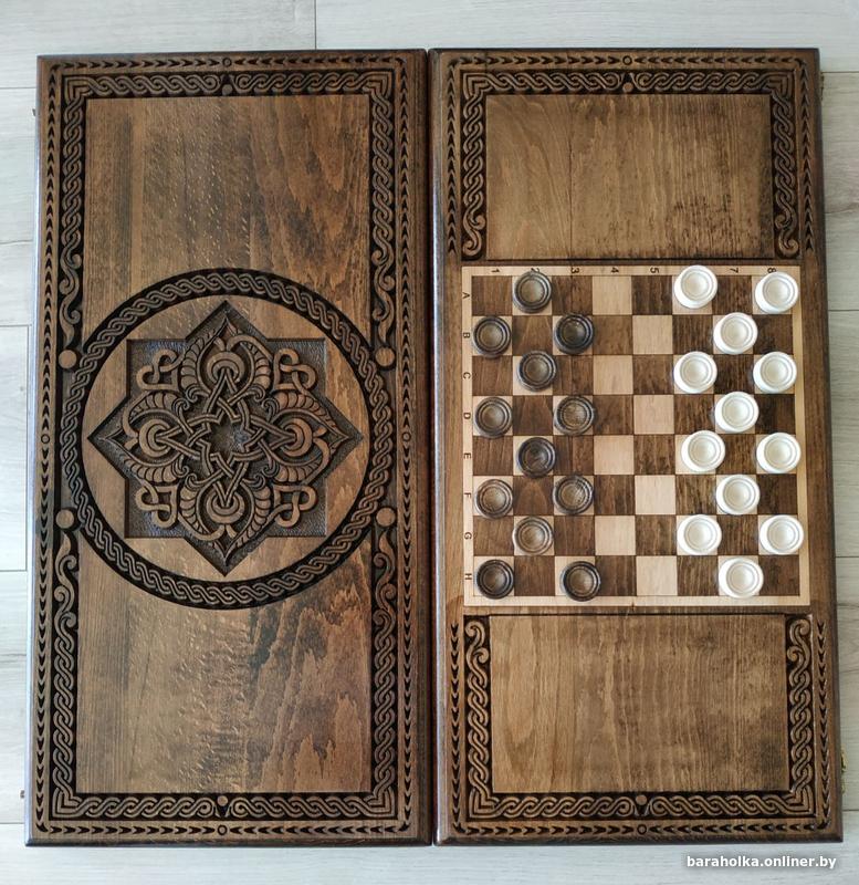 Чехол, кубики (зары), шашечные и шахматные деревянные фигурки на войлочной основе.