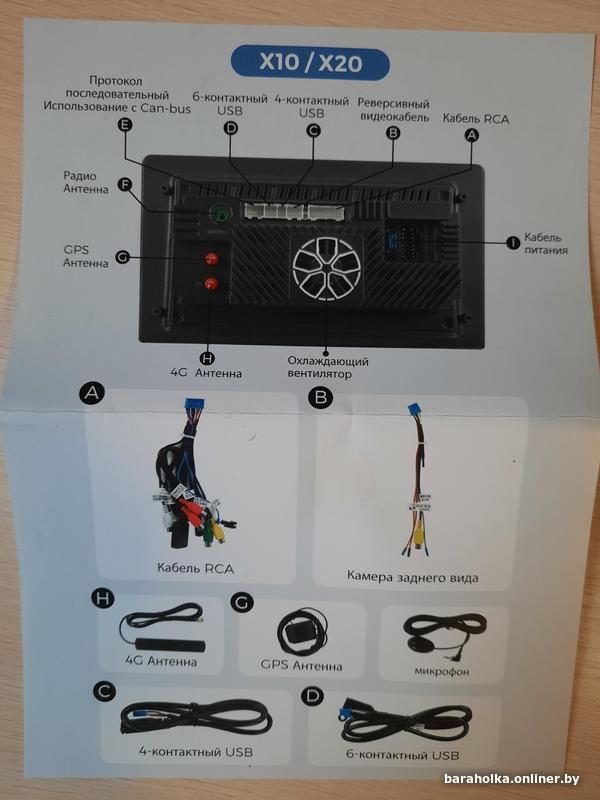 провод подключения камеры заднего вида; USB 2 шт.; микрофон выносной; автомагнитола