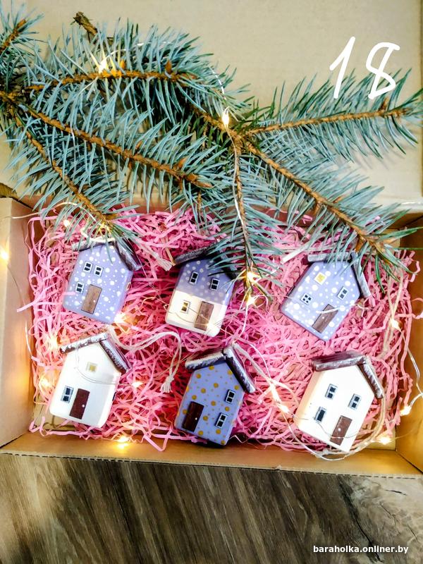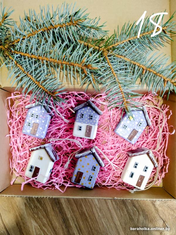 Набор декоративных деревянных домиков ручной работы на ёлку - отличный подарок Вам и Вашим близким на Рождество и Новый год. Изготовлены из дерева, покрыты акриловыми красками и лаком. Набор в подарочной упаковке ( коробка, крафтовый наполнитель), гирлянда в набор не входит. Доставка Европочта, Белпочта. Стоимость указана с учётом доставки. При заказе указывайте номер на фото.