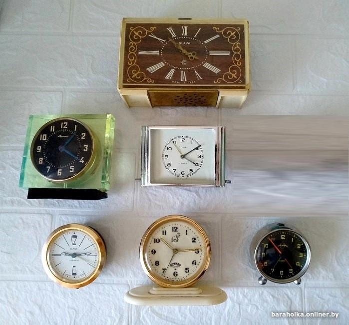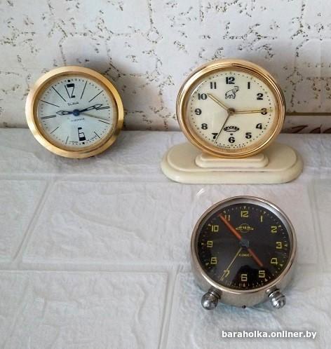 Настольные часы будильники СССР. Внешне все в отличном состоянии, но требуют мелкого ремонта. 30 руб. за мелкие и средние, 40 руб. за большие. Тел. 029 5502222