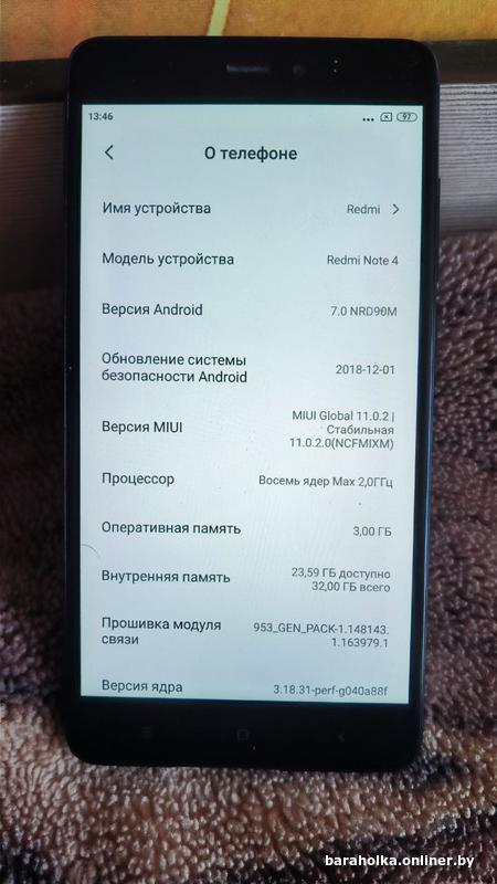 Xiaomi Redmi Note 4 в рабочем состоянии с зарядкой в комплекте. Б/У