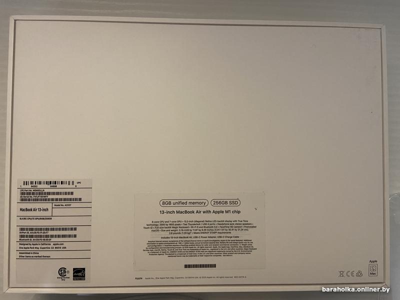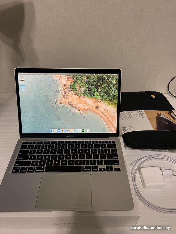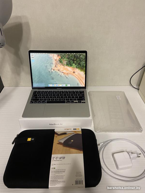 Ноутбук Apple Macbook Air 13" M1 2020, 8/256 silver, в идеальном состоянии, полный оригинальный комплект. Дополнительно новый чехол Case Logic и новый прозрачный чехол из поликарбоната.