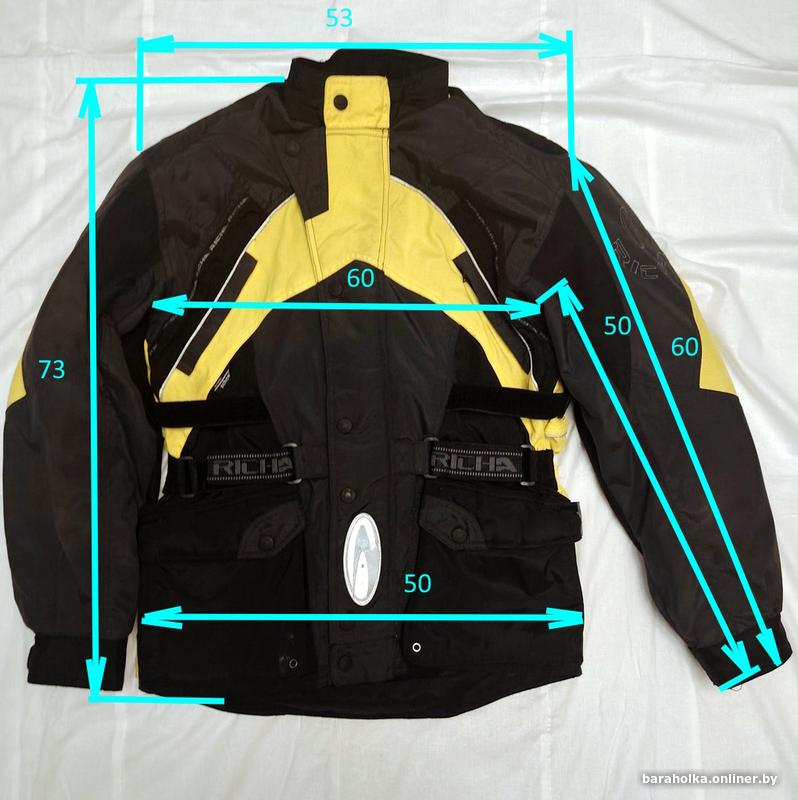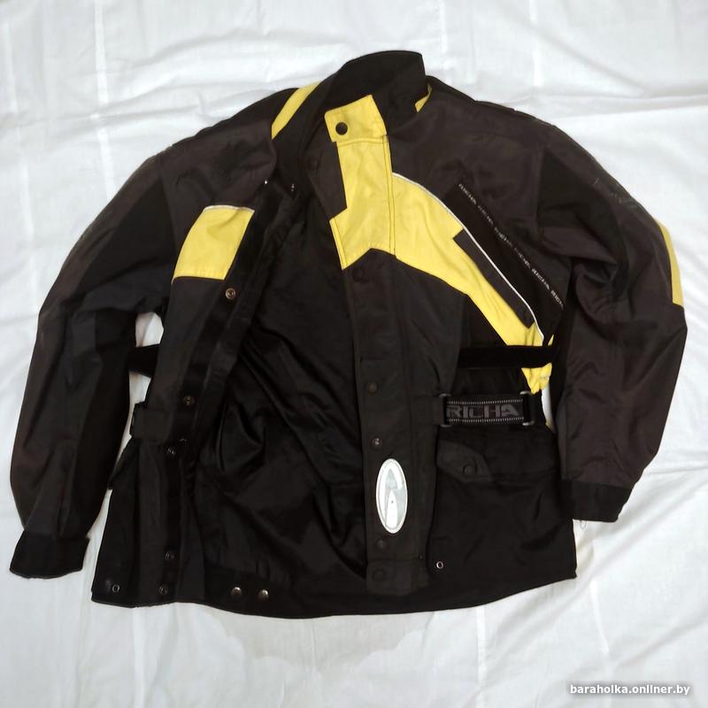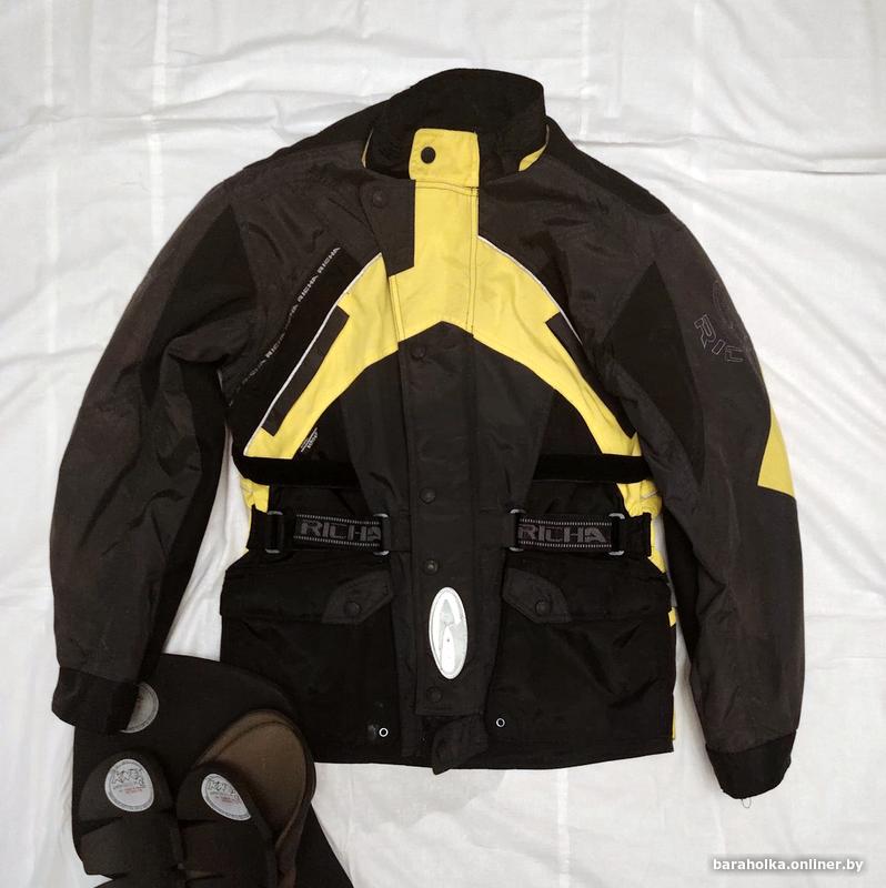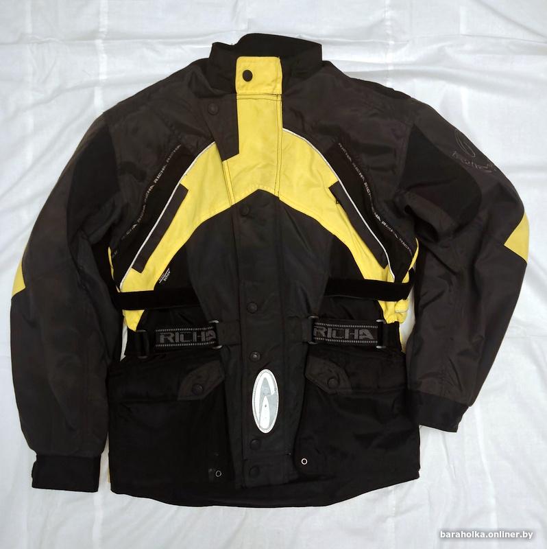 Текстильная мотокуртка Richa (Голландия), размер примерно S-M. В хорошем состоянии! Куртка из ветро/влаго защитной ткани, плотная, дышащая. Все замки и молнии работают без нареканий. Имеются защитные вставки на локтях, плечах и спине. Тел. 80295359411.