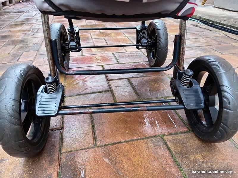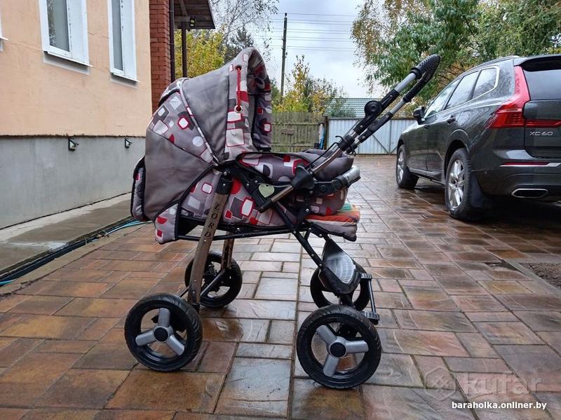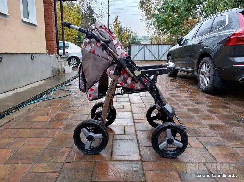Коляска-транформер, видавшая виды, "на кузове" есть небольшие следы коррозии, но качественная и надёжная. Зимой по снегу прёт как трактор, куда лучше многих современных!