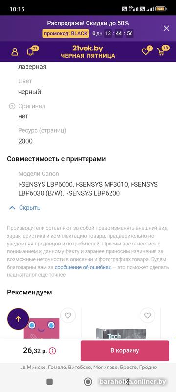 • Картридж для принтера, совместимость на картинке,в наличии несколько штукРечица