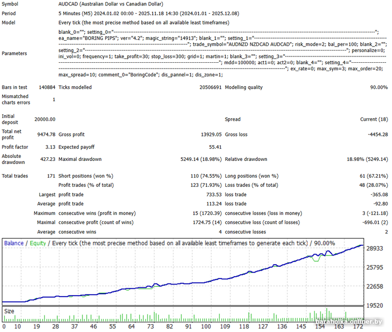 Ниже торговый отчет с 2024 года по сегодня. Начальный депозит 20000.
