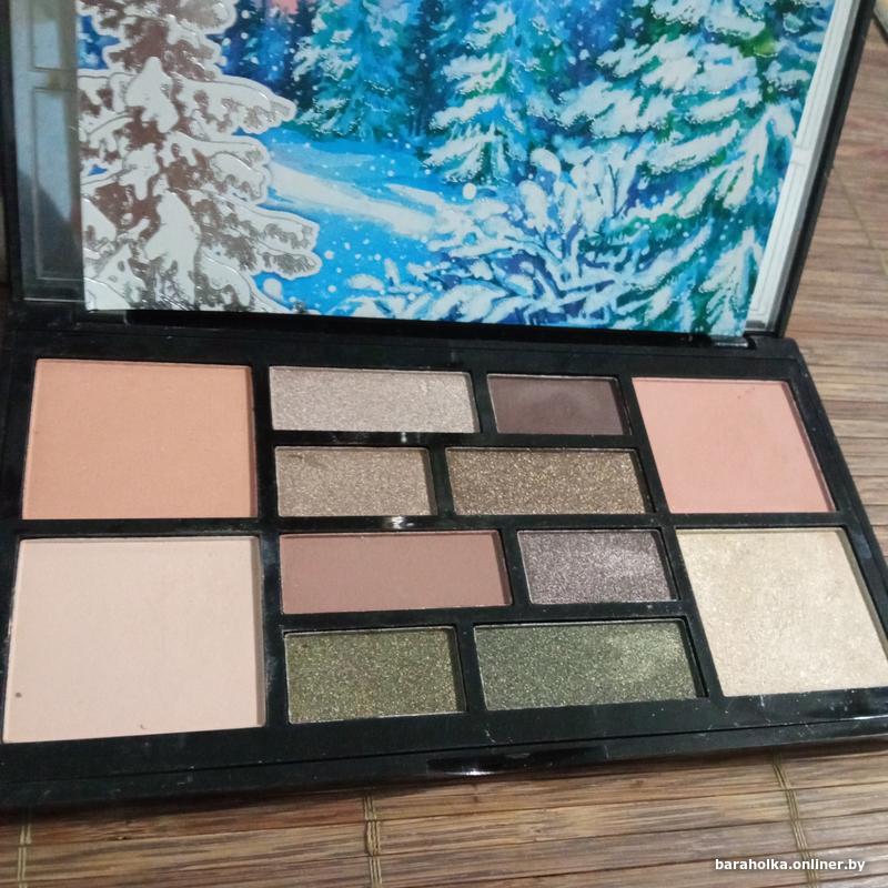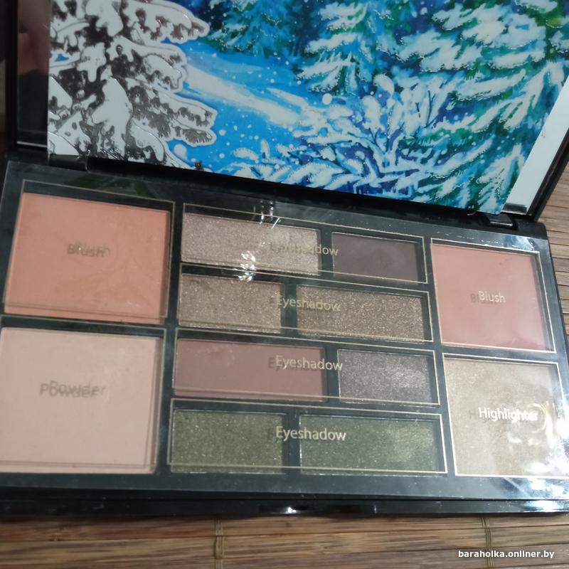 Палетка теней с пудрой, румянами и хайлайтером