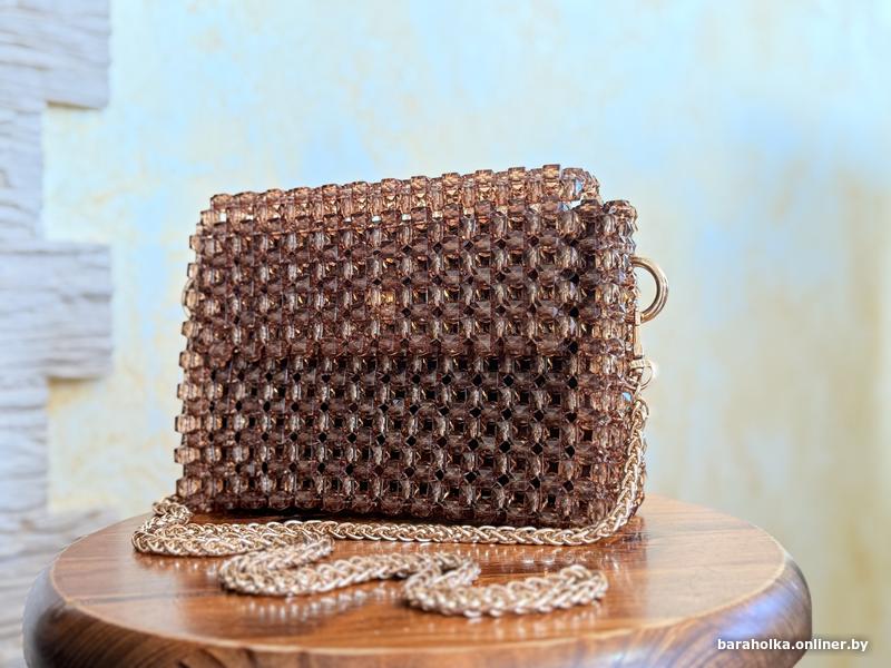 Сумка из акриловых бусин коньячного цвета. С подкладкой, что означает что ваши вещи не будут просвечиваться.