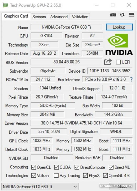 Видеоадаптер: Gigabyte GeForce GTX 660Ti 2GB GDDR5