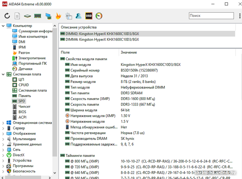 ОЗУ: Kingston HyperX blu. 2x8GB DDR3 1600MHz