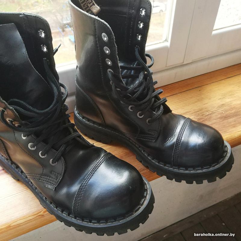 Ботинки берцы Steel высокие на 10 дырок для шнурков (рядов в высоту) без меха/подкладки. Состояние хорошее, носились один год/сезон. Повреждений дефектов нет, все целое на месте, только немного стерты подошвы на каблуке (соотв. году ношения). Если на фото один ботинок, то второй такой же, состояние одинаковое.