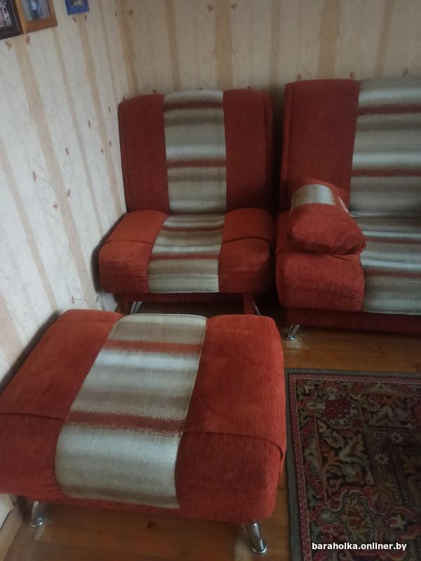 Диван, кресло и пуфик б/у в хорошем состоянии