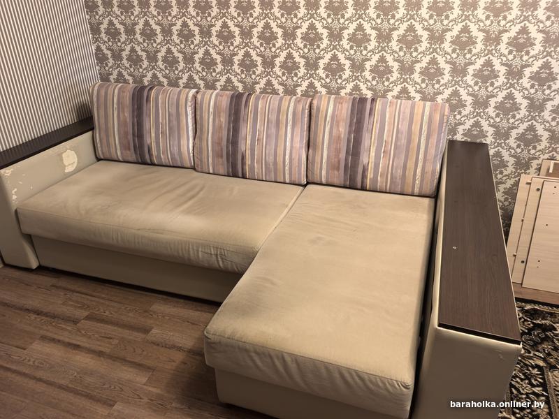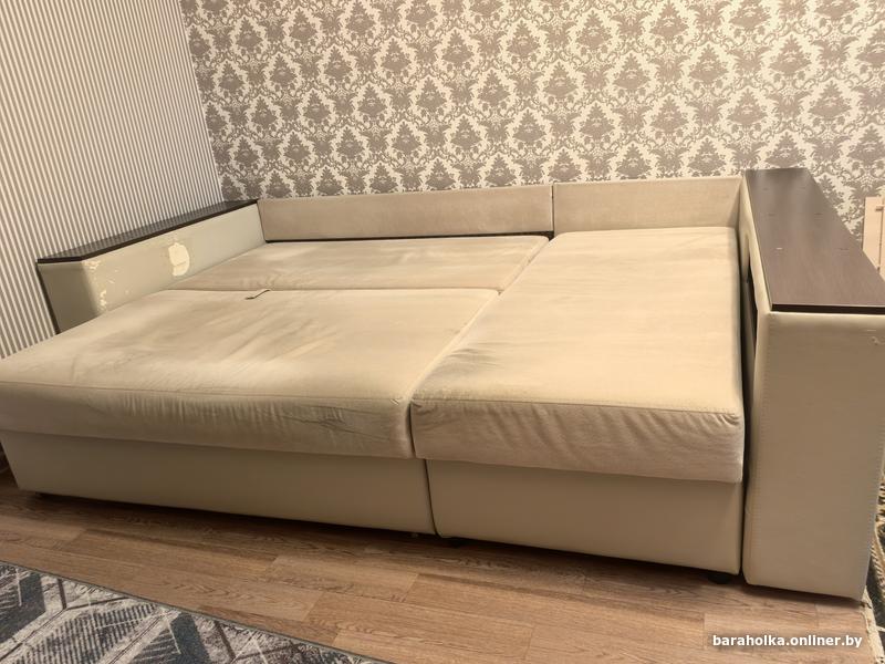 Продам диван угловой двухспальный. Большие 2 ниши для белья. Подушки и есть чехол для него. Каркас целый, ниши для всего белья. Есть только потёртости и стерся кожзам на 1 стороне (на фото видно). Наполнение- ППУ. Самовывоз, возможен небольшой торг.