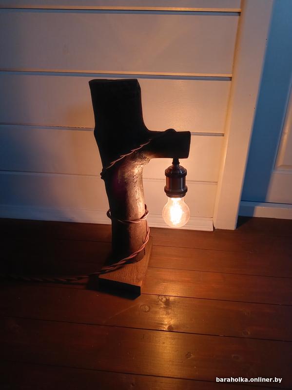 Светильник из натурального дерева, ручная работа. Интересный дизайн. Напольный или на тумбочку. Интересно будет смотреться например на барной стойке. В комплекте энергосберегающая лампочка.