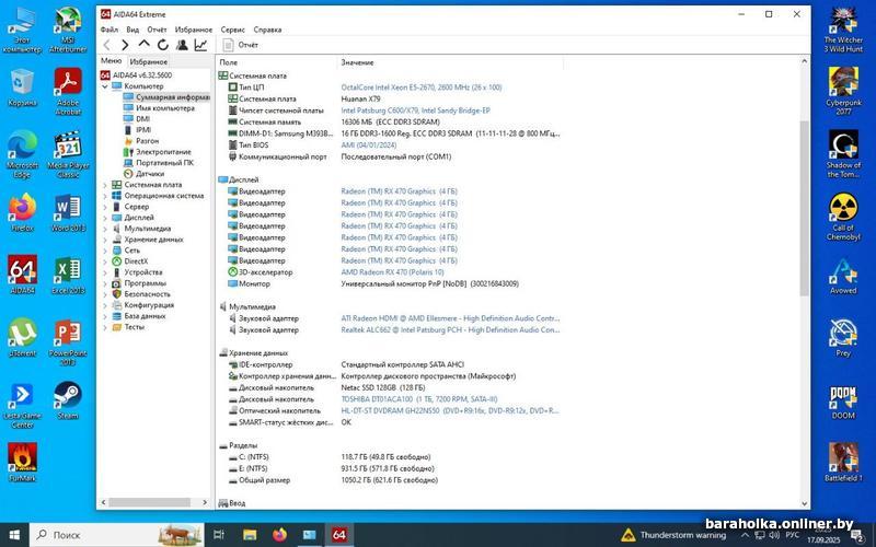 Рабочий игровой компьютер. Установлена Windows 10 x64 с базовыми программами и несколькими популярными играми.