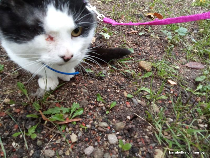 Пристраиваю и ищу дом для молодого кота Анатолия (до 1,5 года). Был найден на улице. Как результат суровой уличной жизни, Анатолий потерял глаз и стал очень бояться других котов, испытывает страх и стресс при прогулке. Но пока не потерял веру в человека.