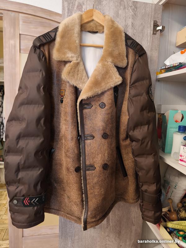 Куртка мужская стилизована под лётную. Производство Турция. Передняя часть - натуральная замша и мех, меховой воротник. Рукава и спина тканевые (полиэстер) утеплённые. Впереди два кармана наружных и один внутренний (на замке). Застёжка - пуговицы. Длина изделия 73см, пог 68 см, длина рукава 70 см
