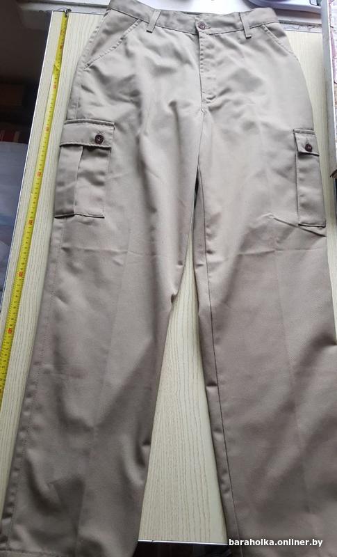 Мужские чинос с карго-элементами (cargo chinos). Прямой крой, средняя посадка на талии, zipper-fly (молния спереди). 6 карманов: 2 передних slant pockets, 2 задних, 2 боковых cargo с клапанами на кнопках. Нет эластана — классический жесткий стиль, но комфортный благодаря смеси тканей.