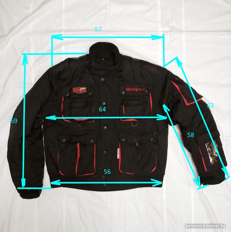 Куртка из ветро/влаго защитной ткани, плотная, дышащая. Все замки и молнии работают без нареканий. Имеется теплая подстежка для езды в прохладную погоду. Имеются защитные вставки на локтях и плечах. Замеры на фото. Тел. 80295359411.