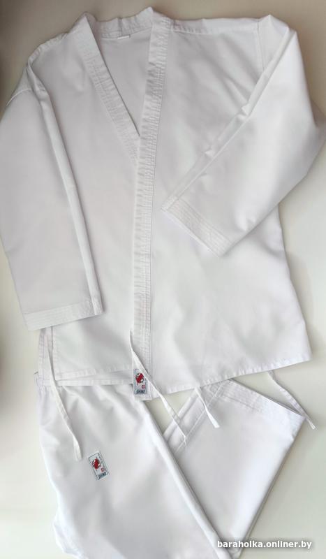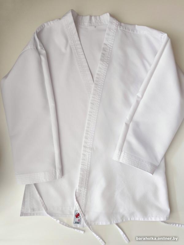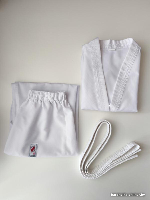 Кимоно белое для каратэ фирмы Shino, указан размер 160, ориентировочно на 12-14 лет, смотрите замеры. Носил один ребенок, дырочек и пятен нет.