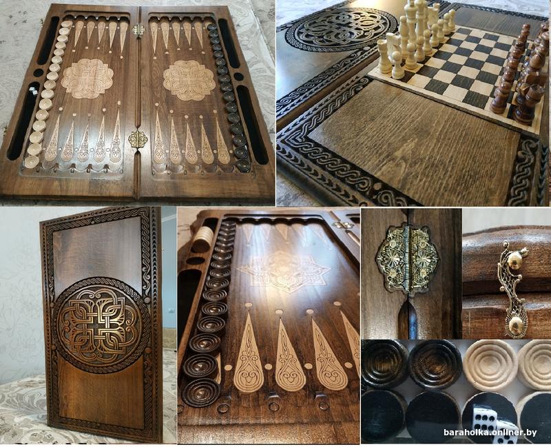 Подарочный набор Hарды + шахматы ручной работы из натурального дерева (лесная груша)