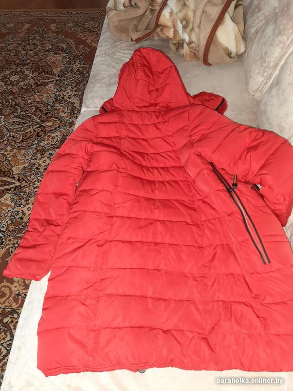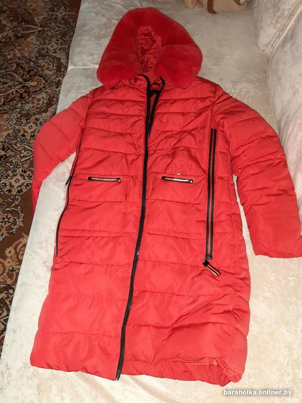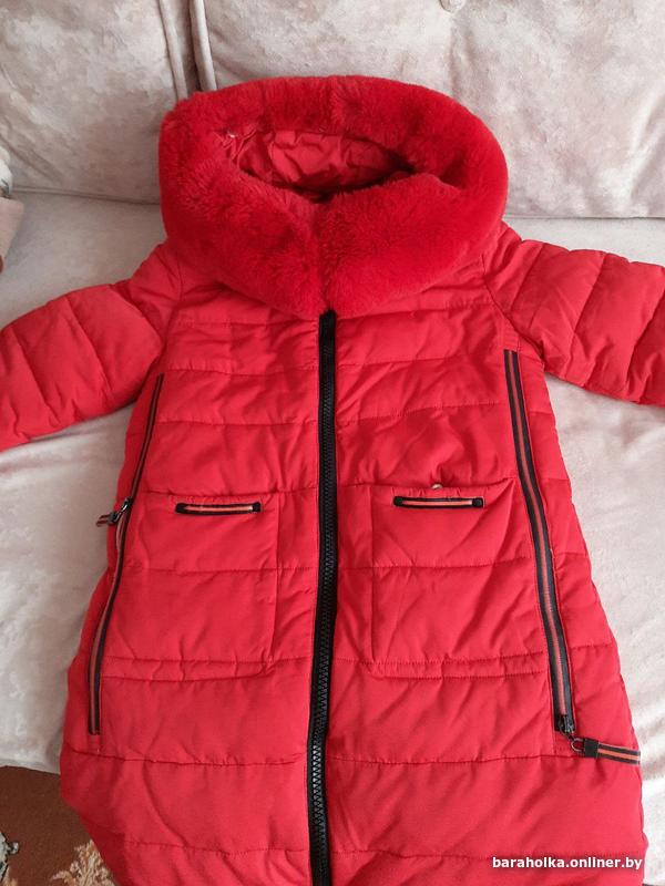 Продается стильное и теплое зимнее пальто для девочки красного цвета.
